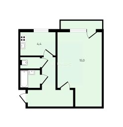 -Общая площадь квартиры 27,5 м², жилая 15 м²;