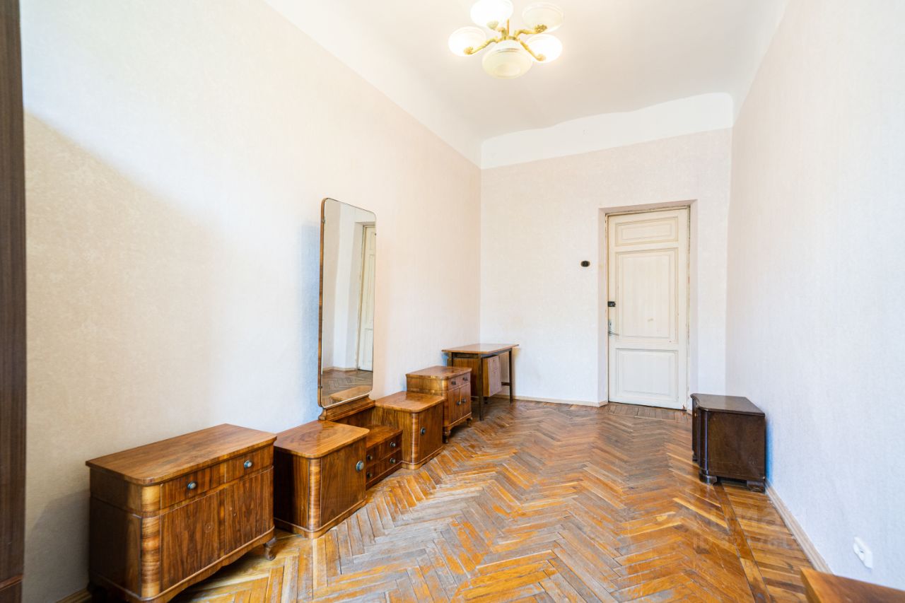 Планировка:4 комнаты правильной формы, изолированные .3 окна выходят на проспект и 3 на торец дома .Квартира солнечная, светлая, очень теплая. Толщина стен 60 см. Высота потолков 3,6 м! Два входа в квартиру(можно разделить). Мебель и техника остается(вывозим все по запросу).