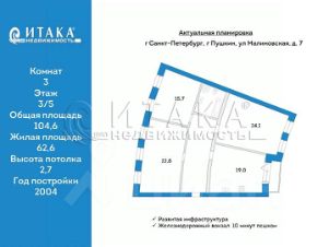 1-92063 Отличное предложение: 3 комнатная квартира для комфортной, спокойной жизни в г. Пушкине. Квартира просторная, светлая с хорошим ремонтом с использованием качественных дорогостоящих материалов. Пол ламинат и плитка с подогревом, 3 кондиционера, бойлер, японская крышка унитаза с функцией биде, спальня с кроватью оснащенной электроподъёмным механизмом и массажем, бытовая техника (AEG и Bosch) Общая площадь 104,6 кв. м. в кирпичном доме 2004 г. постройки, 2 спальни 15,7+22,8, кухня-столовая 43,1 кв. м., квартира расположена на 3 этаже 4 этажного дома, высота потолков 2,7 м., все комнаты изолированы, что дает возможность уюта и пространства для каждого члена семьи. Рядом с домом расположены магазины, кафе, рестораны, аптеки, медицинские учреждения, детский сад, школа, до . Квартира В прямой продаже, один взрослый собственник, в подарок покупателю остается вся мебель и бытовая техника. Не пропустите квартиру Вашей мечты....