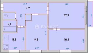 Квартира расположена на третьем этаже пятиэтажного кирпичного дома 1968 года постройки. Общая площадь составляет 52,8 кв. м, из которых 32,9 кв. м — жилая площадь. Комнаты изолированы, что обеспечивает комфорт и уединение. Высота потолков — 2,5 м, что добавляет пространству воздуха и свободы.