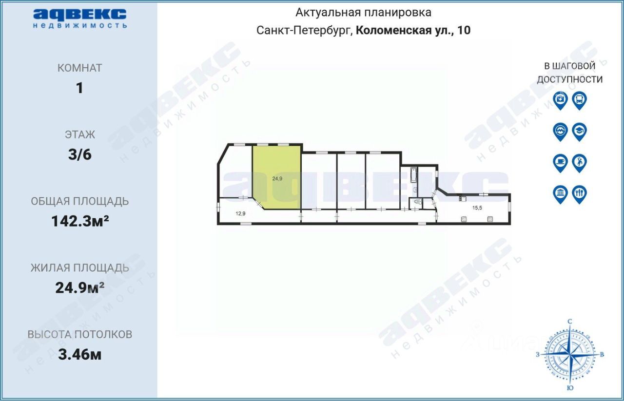 Особенность сделки: сейчас в квартире проживает один сособственник, с которым отсутствует контакт, поэтому доступ в квартиру ограничен. Продажа ведётся без просмотра, все документы готовы, юридическая часть полностью прозрачна. Покупатель получает редкую возможность — купить просторное и светлое пространство в доме с историей, в самом сердце Петербурга по хорошей цене