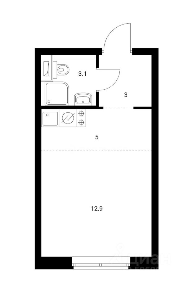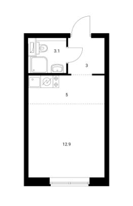 Комната - 12,9 м2 (общая площадь комнаты 17.9 м2)
