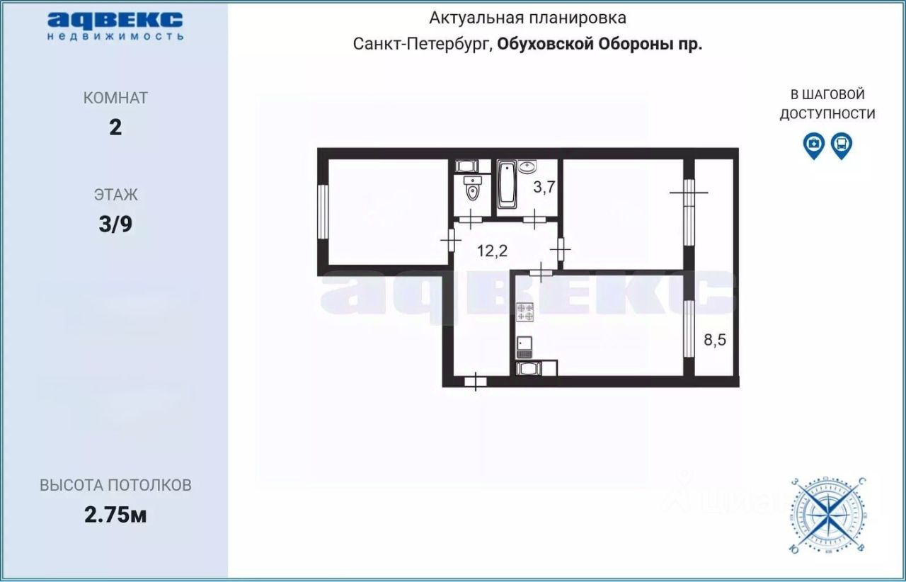 2. Окна квартиры выходят на 2 стороны: северо-восток и юго-запад - и утреннее, и вечернее солнце в квартире!