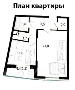 - Правильной формы комната 24 м²