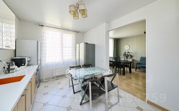 • Функциональная планировка: две спальни 15 кв.м и 16 кв.м, гостиная 22 кв.м с выходом на просторную кухню 13 кв.м, два санузла, отдельная постирочная, уютная лоджия.