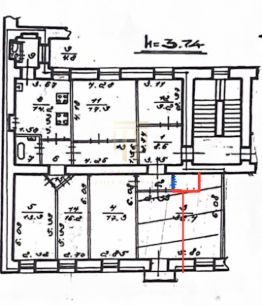 Комната 32.4 кв.м. с балконом, разделена на 2 отдельные комнаты. Сделан свежий косметический ремонт, установлены новые стеклопакеты. Потолки высотой 3.74 метра подчёркивают особую атмосферу пространства, дополненную сохранившейся исторической лепниной.