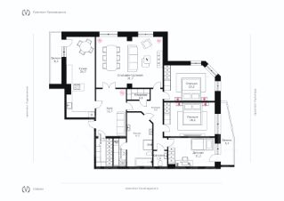 Квартира в классическом стиле для большой семьи: три спальни, просторная гостиная, большая кухня с лоджией.