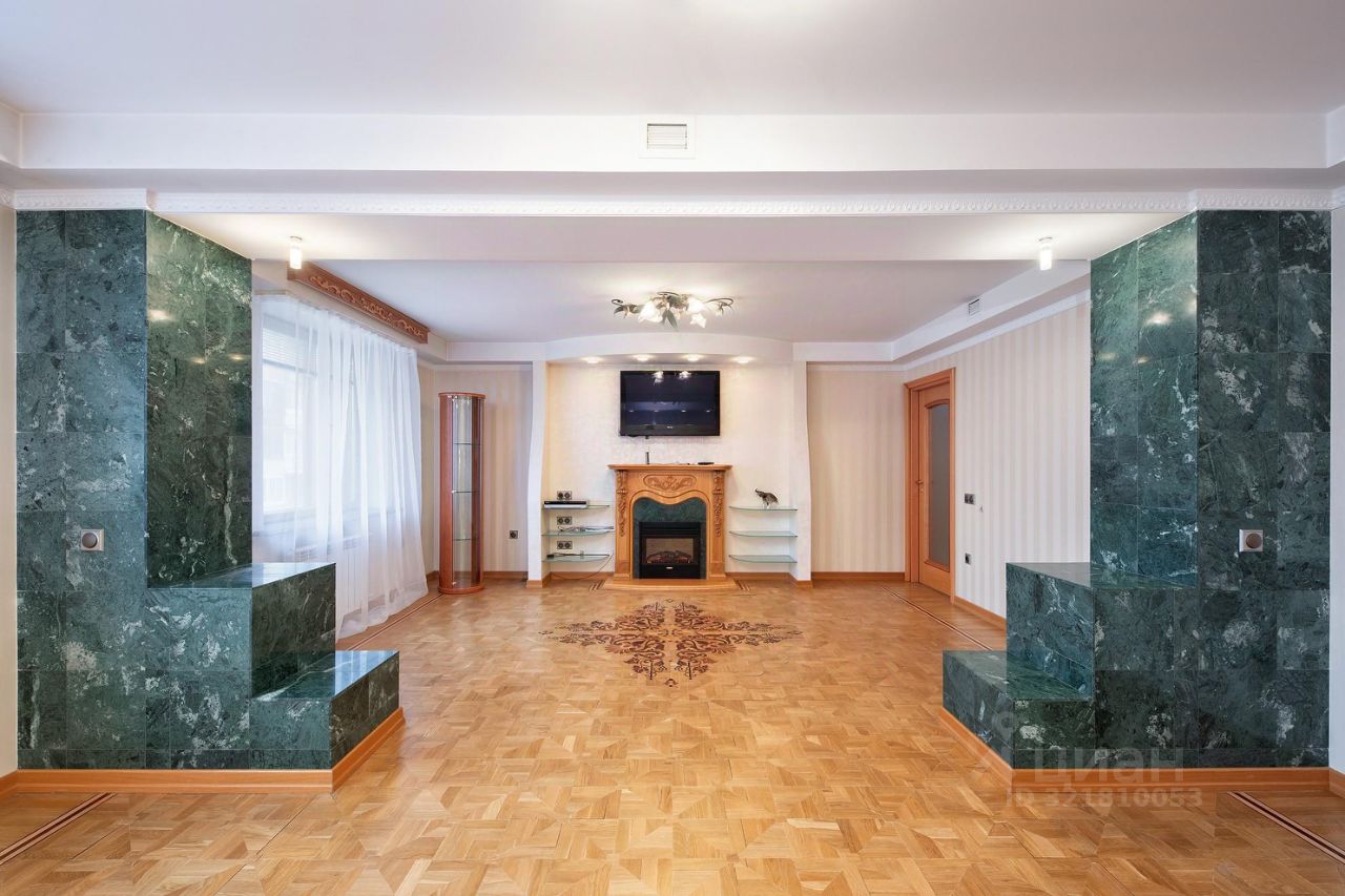 Отдельная просторная гостиная с двумя окнами и камином. Пол  художественный паркет из ценных пород дерева.