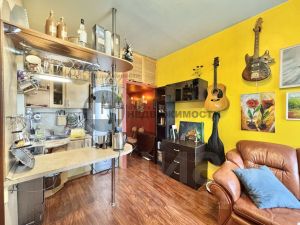 Квартира студия продается с мебелью и техникой. Кухонный гарнитур с техникой, диван, места для хранения и сантехника входят в стоимость. Окна квартиры выходят в зеленый двор.