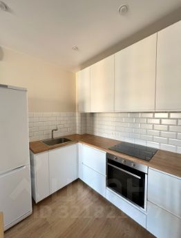 Кухня полностью оборудована: встроенная варочная поверхность, духовой шкаф, вытяжка, посудомоечная машина , холодильник — Икея.
