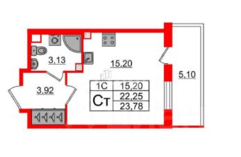 До метро можно добраться на транспорте всего за 20 минут. Удобная, классическая планировка, вместительная прихожая. Общая площадь студии - 22,25 м2 + балкон 5,1 м2, высота потолка 2,75 м. Квартира продается с чистовой отделкой.