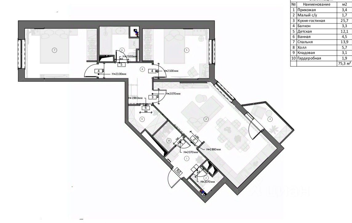 ID: 1914654 Эксклюзивное предложение: роскошная дизайнерская трехкомнатная квартира в самом благоустроенном современном районе Санкт-Петербурга. Приглашаем Вас стать владельцем уникальной квартиры, выполненной в стиле современного лоска и безупречного вкуса. В квартире предусмотрены помещения для взрослых и детей с двумя санузлами, изолированными комнатами, местом для совместного отдыха- совмещенная гостиная-кухня. Есть гардеробная и кладовая. Все помещения очень функциональны, при этом нет лишних деталей. Основные характеристики: Общая площадь 75,3 кв.м. Прихожая -3,4 кв.м. Малый санузел - 1,7 кв.м. Кухня-гостиная - 25,7 кв.м. Балкон - 3,3 кв.м. Детская спальня - 12,1 кв.м. Ванная - 4,5 кв.м. Спальня - 13,9 кв.м. Холл - 5,7 кв.м. Кладовая - 3,1 кв.м. Гардеробная - 1,9 кв.м. Дизайн и отделка: • Эксклюзивные авторские ремонтные решения, сочетания дерева и высококачественных материалов; • Уникальные световые решения и умная система освещения; • Эргономика и просторные планировочные решения; • Двухсторонняя панорама на город; • Квартира полностью мебелированная, оснащенная немецкой бытовой техникой (продается в комплекте с квартирой); • Система "Теплый пол"; • Кондиционеры 3 шт. Mitsubishi Electric; • Индивидуальный теплоузел с возможностью регулировки подачи отопления и экономии платежей; • Счетчики прошли проверку и замену в 2025 году. Окружение: Рядом с домом удобные транспортные развязки, школа, детский сад, поликлиника, крупные торговые центры, АЗС, рестораны, кафе, парки и другая инфраструктура. Внутри двора детская площадка, парковка открытая и крытая, отдельно есть вариант покупки 2 парковочных мест на крытой охраняемой парковке. Квартира продается в том виде, который представлен на фото, исключая личные вещи продавца. Помощь в одобрении Вашей ипотеки.
