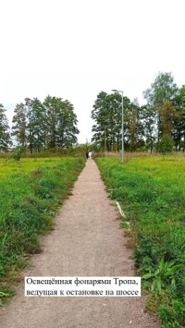До Санкт-Петербурга можно добраться несколькими автобусами (если Вы без авто): 481, 482, 482В, 484, 487, 145, 145Э. До остановки идти 5 минут по освещённой приятной тропинке (см. фото). Одна из маршруток останавливается во дворе дома.