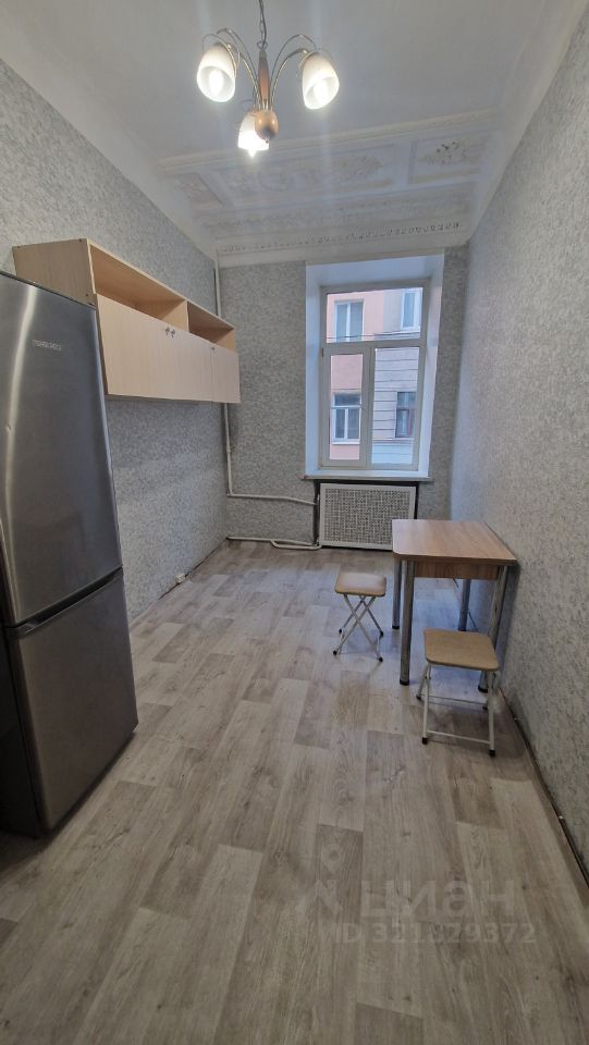 Комната правильной формы выходит окном на Свечной переулок. Окно высокое, в комнату поступает много света. На потолке 3,12 метра лепнина. Частично сделан косметический ремонт. Остается холодильник, телевизор, деревянный квадратный стол со стульями. Небольшой шкаф с микроволновой печью , полки для хранения вещей и пылесос. Комната закрывается металлической дверью на ключ. Готовы купить новому собственнику диван.