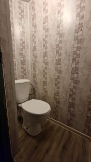 Длинный просторный коридор, туалетная комната.