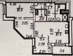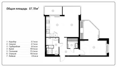 Общая площадь квартиры 57,7 кв.м (по документам 53,6 с учетом коэффициента на балкон).