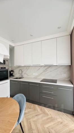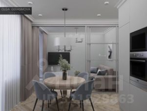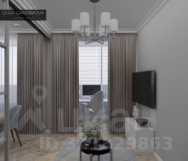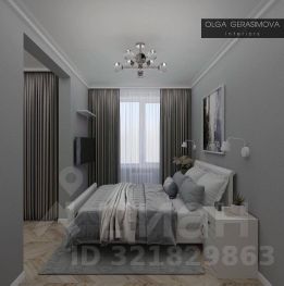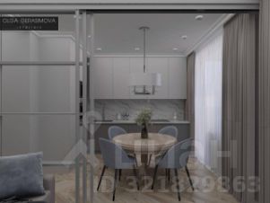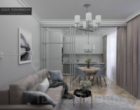 Открытая планировка с кухней-гостиной и отдельной спальней. Организована зона для кабинета.