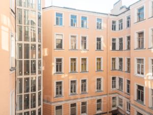 Фасадный вход с улицы с очень красивой и богатой парадной, где сохранена вся лепнина, историческая плитка, произведен очень качественный ремонт.
