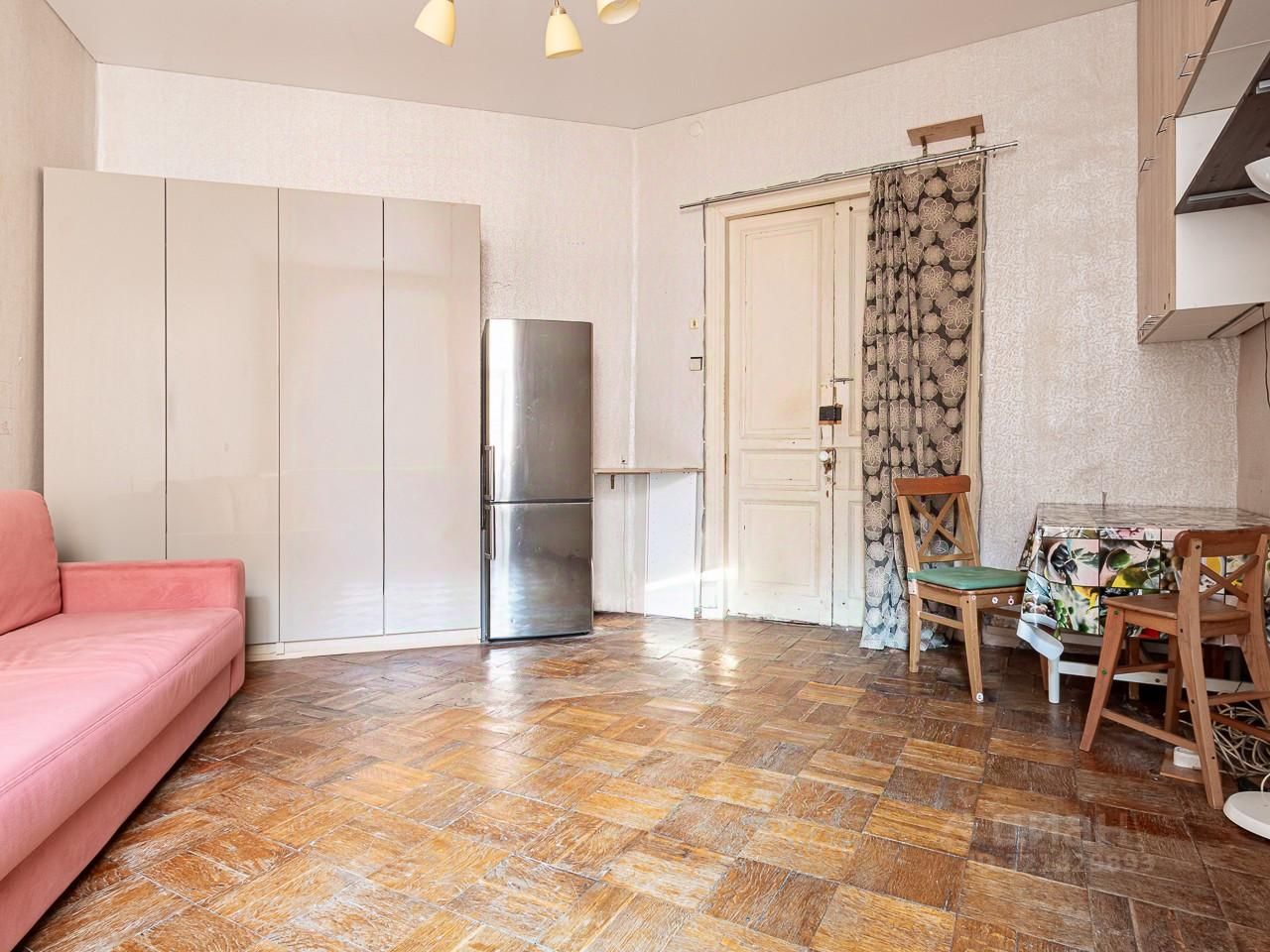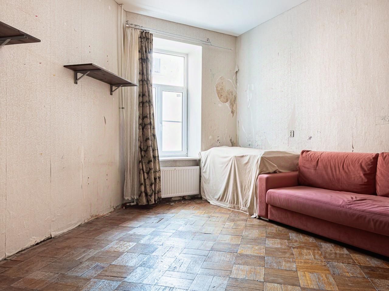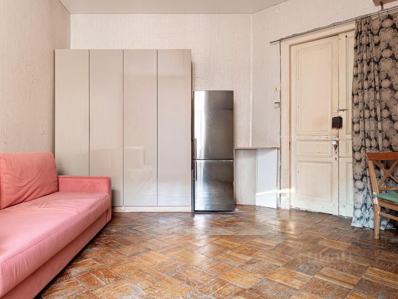 Площадь комнаты 20,8 кв.м, потолки 3,37 м. Окно выходит в тихий и чистый двор. Часть мебели и стиральная машина останутся покупателю.