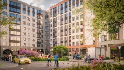 У каждого жилого корпуса будет свой закрытый внутренний двор с детскими площадками и зелеными насаждениями. Для любителей спорта и активного отдыха предусмотрены велодорожки на территории комплекса.