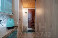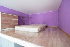 На первом этаже выделена кухонная зона, рабочее пространство и небольшой раскладной диван. Продуманы места для хранения. Второй этаж построен на металлокаркасе, подняться туда можно по лестнице. Там расположено спальное место, небольшой комод и сушилка для белья. В комнате натяжной потолок, высота 3.62м.