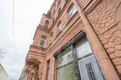 Доходный кирпичный дом 1902 года постройки. Фасад выполнен в стиле модерн, у парадной установлены величественные Атланты, которые придают историческому зданию особый шарм.