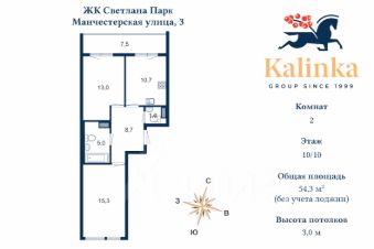 - площадь 54,3 кв.м (не включает лоджию 7,5 кв.м.)
