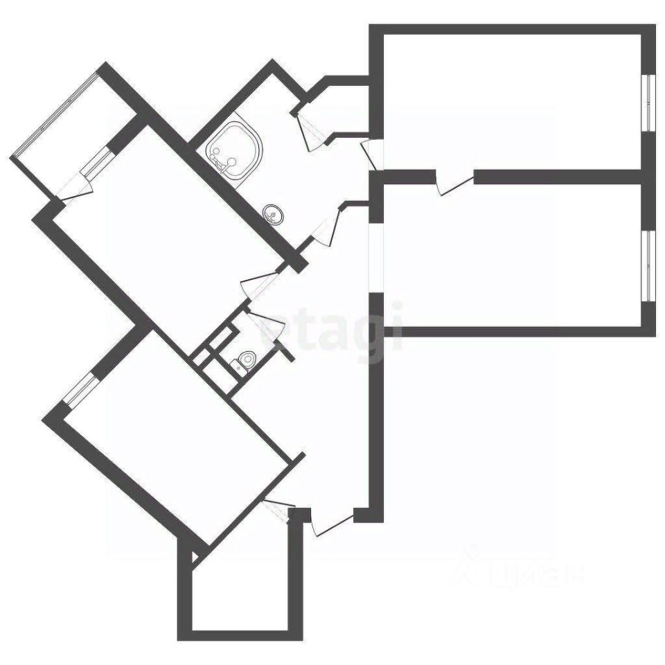 Жилая площадь 74.2 кв.м.