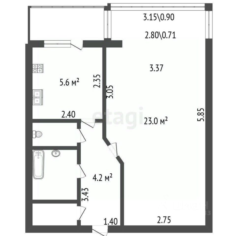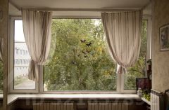 - Полностью остекленный балкон на кухне.