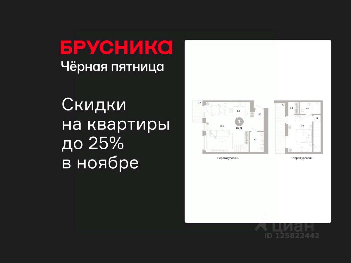 Продается однокомнатная квартира с предчистовой отделкой в ЖК "Северный ветер" на 7 этаже. 2-уровневая квартира, множество вариантов распределения полезного пространства. Общая площадь: 82.83 кв.м., жилая: 15.8 кв.м., площадь просторной кухни-столовой: 33.3 кв.м. Все окна выходят на одну сторону. В квартире два балкона, два совмещенных санузла. Наличие в квартире террасы открывает возможность для обустройства дополнительной площади. Высота потолков 3.1 м.