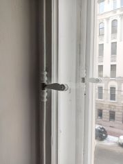 Очень большие комнаты 23.7 кв.м., 23.8 кв.м. и 11.60 кв.м., высота потолков 3.55 кв.м. Окна одной из комнат выходят на ул Бородинская, две других - в тихий двор. Просторная и светлая кухня с газовой колонкой, площадью 14.7 кв.м. Двор огорожен, машины ставят резиденты.