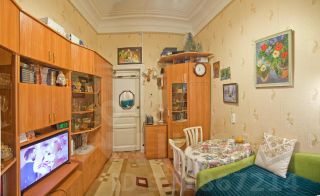 Квартира общей площадью 86.10 кв.м. В квартире сохранилась оригинальная лепнина, деревянные окна с латунными задвижками, две изразцовые печи: белая и темно-бирюзовая, дубовые полы в отличном состоянии. Высокие большие окна.