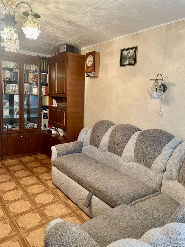 Продается уютная 2-х комнатная квартира с лоджией. Квартира расположена на 4-м этаже 5-ти этажного дома. Квартира теплая, светлая, двухсторонняя, с удобной планировкой, окна выходят на улицу и во двор. Общая площадь 46,8 кв. м., жилая 26,1 кв. м. Кухня 8 кв.м, гостиная 14,7 кв. м, спальня 11,4 кв.м. Утепленная лоджия 3,8 кв. м. Ремонт косметический. В квартире можем оставить всю мебель и технику за исключением дивана и кресла в гостиной.