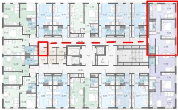 Предлагается кладовка на этом же этаже, в том же отсеке, что и квартира ( см. рис. этажа).