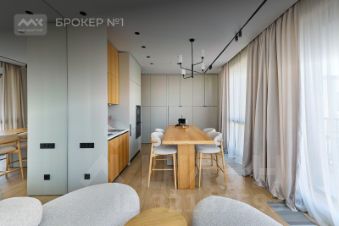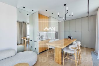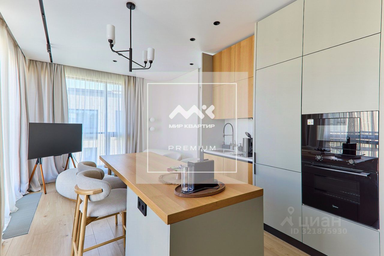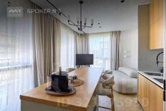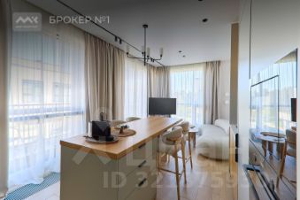 В двухстороннем АПАРТАМЕНТЕ площадью 49 кв.м выполнен новый, стильный дизайнерский ремонт. Многоуровневая система освещения, корпусная и мягкая мебель изготовлены на заказ, теплый водный пол и напольные радиаторы, качественная техника, во всем апартаменте панорамное остекление - окна в пол! Просторная кухня-гостиная (26 кв.м) с обеденной зоной-островом оснащена современной техникой, стильной мебелью, выполненной на заказ, уютными диванами и имеет выход на просторный балкон площадью 10 кв.м. Используемые в интерьере элементы декора являются одними из самых востребованных в этом году!