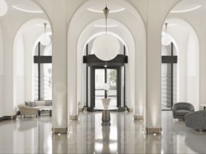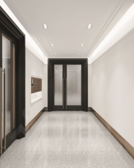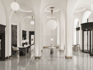 Во входной зоне жильцов встречает нарядный холл, стены которого украшены произведениями искусства.