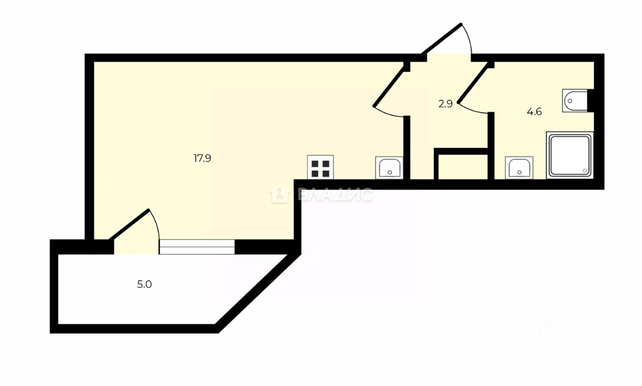 Вашему вниманию представляется уникальная студия с большой площадью 25.4 метра!