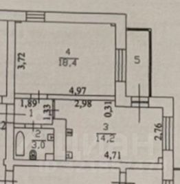 Квартира состоит из: комнаты 18,5 с двумя окнами, квадратная кухня 14,2 м с выходом на лоджию, коридор.