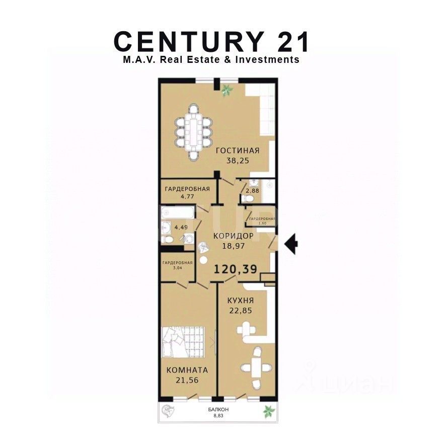 • Комфорт: кухня-гостиная с выходом на балкон, спальня с гардеробной, два санузла и дополнительные кладовые.