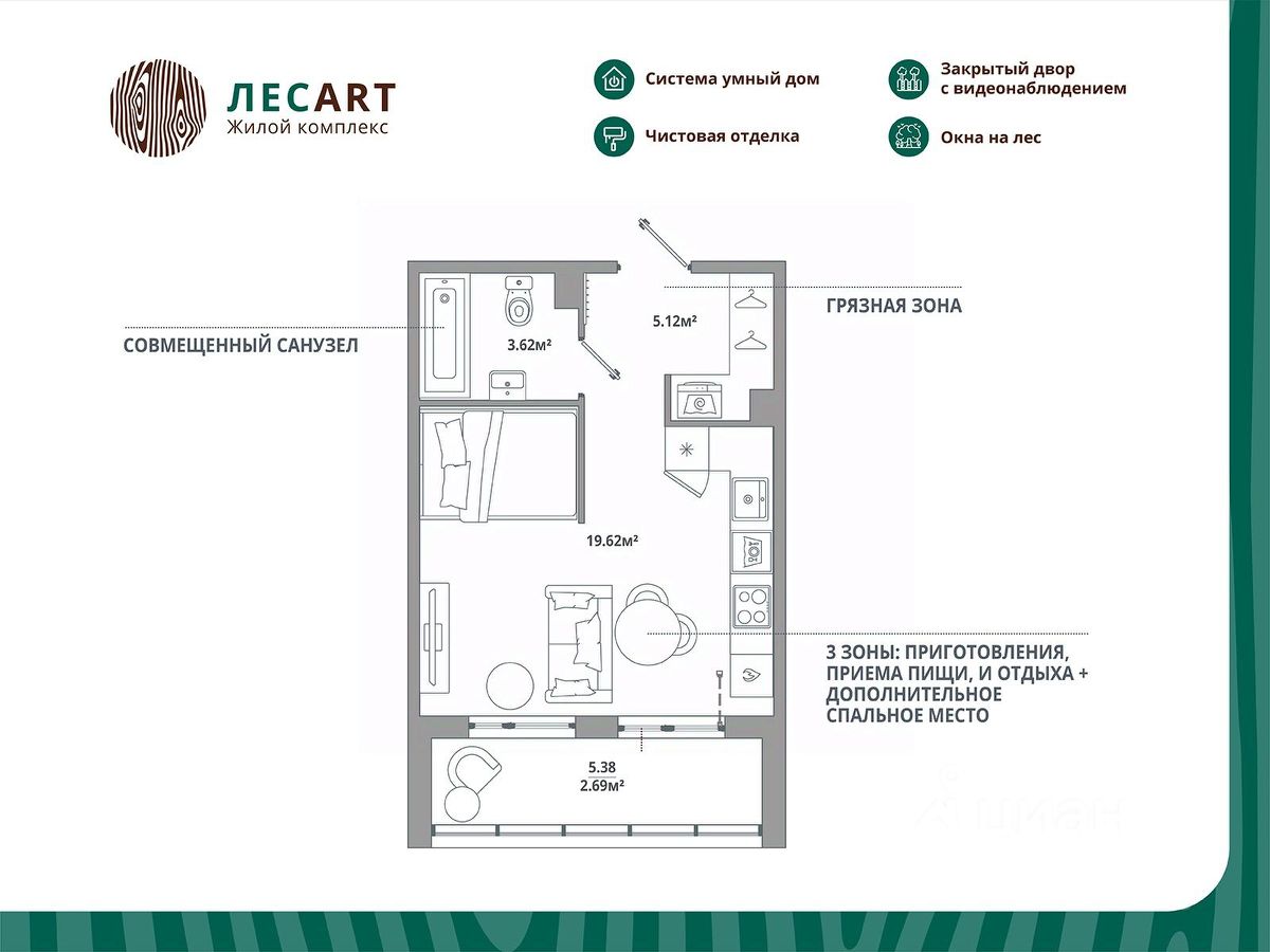 Продаётся студия квартира 043, общей площадью 31.05 кв.м., на 9. Дом комфорт-класса, 12 этажей, в окружении леса и малоэтажной застройки. Проект с умным домом. Передача квартир в апреле 2026г.