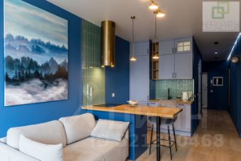 Квартира с дизайнерским ремонтом, всё продумано до мелочей. Отделка выполнена из высококачественных материалов. Натяжные матовые потолки, стильные обои, ламинат. Кроме основных источников света во всей квартире много дополнительного стильного освещения: бра, ленточная подсветка, точечные лампы.