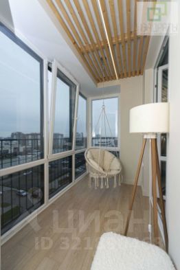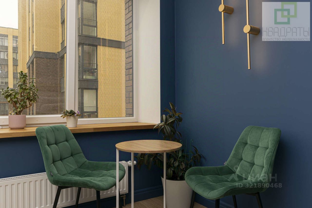 Приличная видовая лоджия с теплыми полами, панорамным остеклением (площадь квартиры вместе с ней 66, 5м2). Оконные подоконники выполнены из массива дуба.