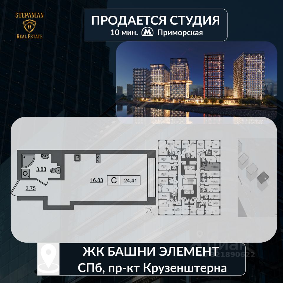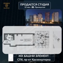 Продается квартира-студия ЖК Бизнес-класса Башни элемент