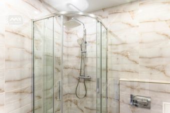 В квартире выполнен современный и лаконичный ремонт, который делали для себя! Пол уложен испанским керамогранитом и ламинатом, стены оклеены обоями из последних коллекций Marburg.