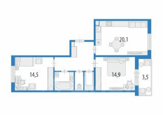 +Спальня 14.9 м + лоджия 3,5 метра