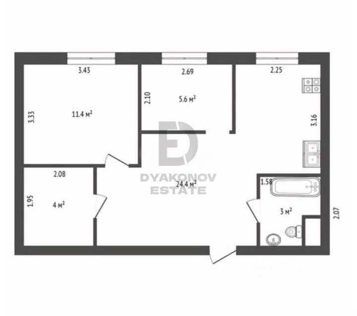 Евро трехкомнатная квартира общей площадью 48,4м2 с дизайнерским ремонтом.