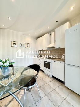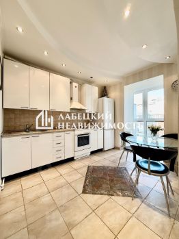 ВМЕСТИТЕЛЬНАЯ кухня площадью 12.6 м.кв. с кухонным гарнитуром. На полу выложен КАЧЕСТВЕННЫЙ керамогранит, потолки подвесные с точечными светильниками.