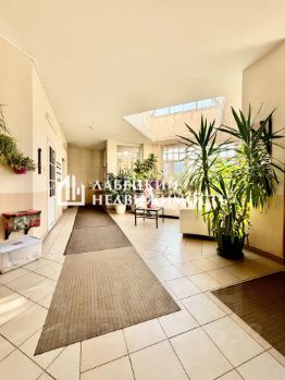 В доме очень ПРОСТОРНЫЙ ХОЛЛ со стеклянной крышей, в котором растут КРАСИВЫЕ растения, а также 24/7 дежурит КОНСЬЕРЖ, ОХРАНА и ведется видеонаблюдение. В парадной имеется очень ВМЕСТИТЕЛЬНАЯ колясочная и ДВА современных лифта, один из которых грузовой.