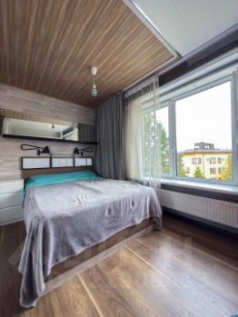 Вид из окна спальни - на зелёный лес, а прямо у дома растут ели, туи и сосны. В квартире всегда свежий, почти курортный воздух. Большие окна наполняют пространство светом и отражают смену сезонов. Утренние лучи мягко освещают комнаты до середины дня.
