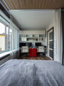 Рациональная планировка: спальня, кухня-гостиная, кабинет(или детская). Пространство легко трансформируется под ваши задачи. Квартира изначально задумывалась как эргономичное, меняющееся пространство. Рабочий кабинет можно превратить в детскую (или наоборот), а в спальне легко зонировать место шторами от рабочего пространства. В кухне создана атмосфера кафе: за большим столом удобно собираются до 6 человек.